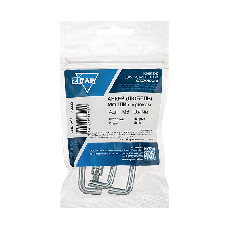 Анкер дюбель с крюком Молли W М6х52 (уп.4шт) Tech-Krep/Zitar 112289
