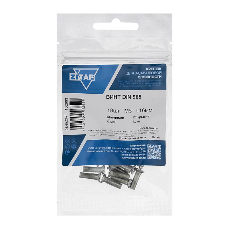 Винт с потайной головкой М5х16 DIN 965 оцинк. (уп.18шт) Tech-Krep/Zitar 102993
