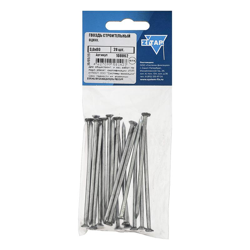 Гвоздь строительный 3х80 оцинк. (уп.20шт) Tech-Krep/Zitar 108062