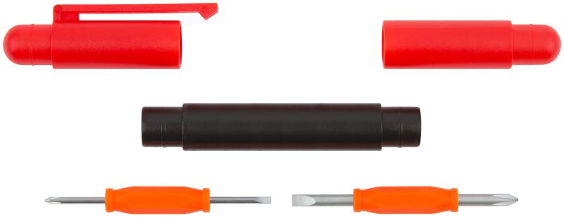 Отвертка для точных работ ‘’Мини’’ FIT IT предназначена для работ с мелкими крепежными элементами, имеющими шлицы PH0; SL3; PH00; SL1,8. Дизайн в форме авторучки облегчает хранение и применение отвёртки. Корпус отвертки выполнен из качественного пластика, стержни — из хром-ванадиевой стали. 2 сменных двухсторонних стержня в комплекте обеспечивают широкий спектр применения.