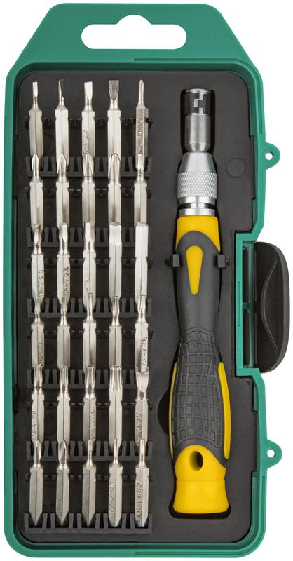 Отвертка для точных работ FIT IT с битами в комплекте (30 шт.) позволяет ремонтировать компьютеры, телефоны, часы, очки, фотоаппараты, электротехнику и мелкую электронику. Биты обладают высокоточной геометрией и позволяют работать даже с самыми мелкими крепежными элементами. Эргономичная пластиковая прорезиненная рукоятка обеспечивает удобство и точность работ. Пластиковый кейс обеспечивает удобство хранения и транспортировки.