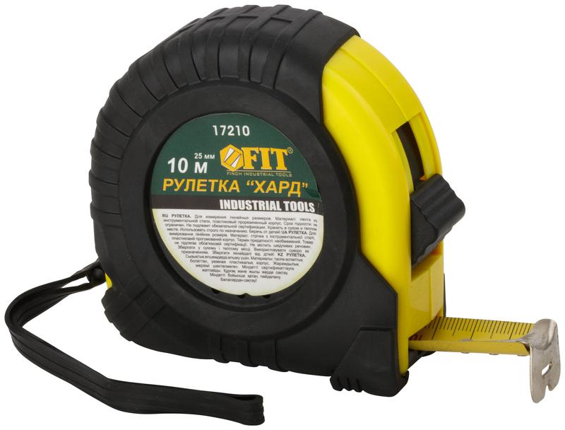 Рулетка Хард 10мх25мм прорезиненный корпус FIT 17210