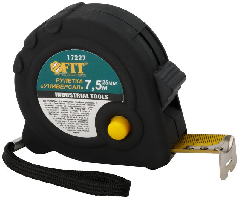 Рулетка Универсал 7.5мх25мм прорезиненный корпус тройн. стопор FIT 17227