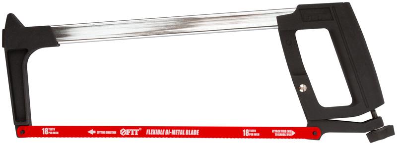 Ножовка по металлу FIT HQ предназначена для резки металла, пластика, древесины твердых и мягких пород. Трубчатая алюминиевая рама усиливает конструкцию. Возможность закрепления полотна под углом 45 позволяет работать в труднодоступных местах. Зубья из быстрорежущей (HSS) стали Р6М5 с дополнительной термообработкой обладают высокой стойкостью к разрушению и долгим сроком службы. Прорезиненная рукоятка обеспечивает надежный хват. Высокая гибкость полотен позволяет резать изделия под углом при сильном натяжении.