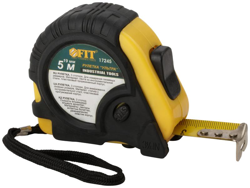 Рулетка Ультра 5мх19мм прорезиненный корпус тройн. стопор FIT 17245