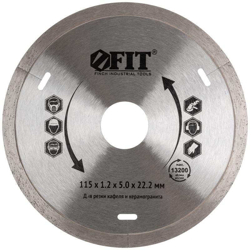 Диск отрезной алмазный сплошной по кафелю 115х1.2х5.0х22.2мм влажная резка FIT 37442