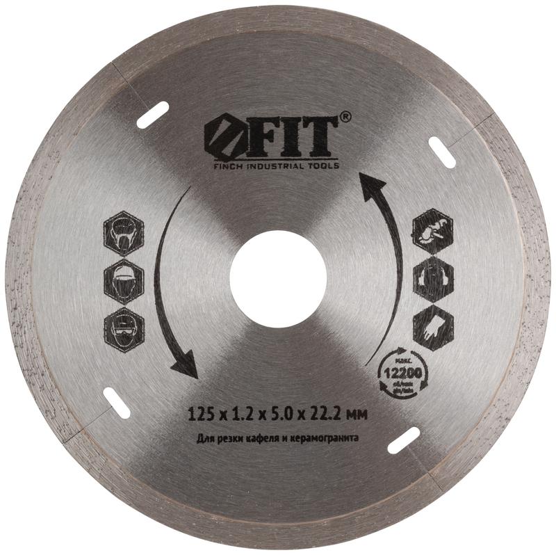 Диск отрезной алмазный сплошной по кафелю 125х1.2х5.0х22.2мм влажная резка FIT 37443