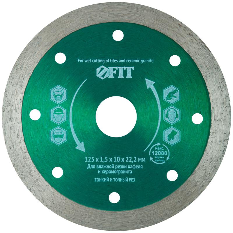 Диск отрезной алмазный сплошной по кафелю и керамограниту 125х1.5х10х22.2мм влажная резка FIT 37450