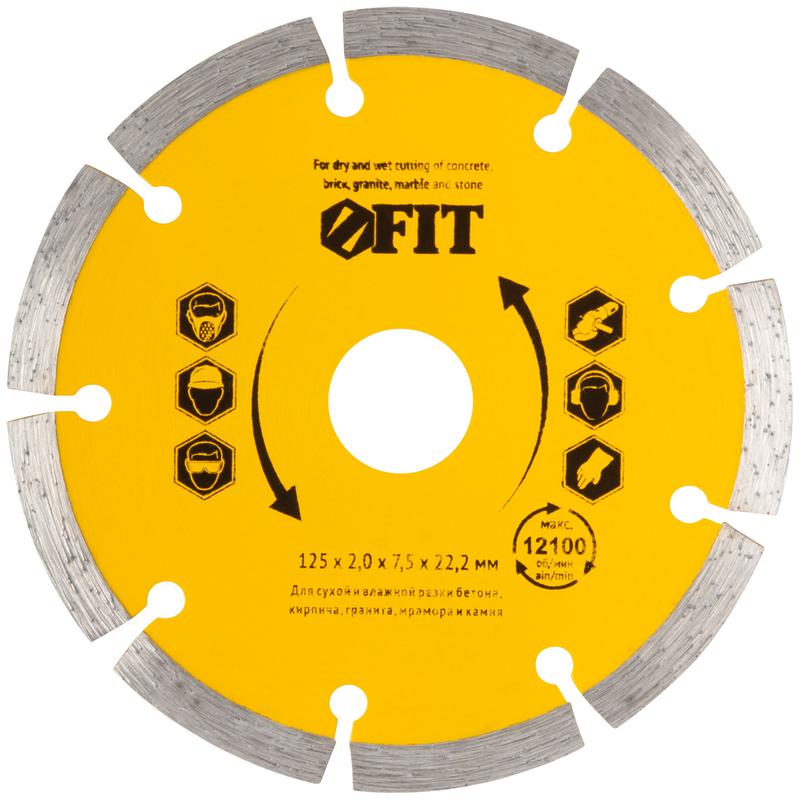 Диск отрезной алмазный сегментный 125х2.0х7.5х22.2мм сухая и влажная резка FIT 37463