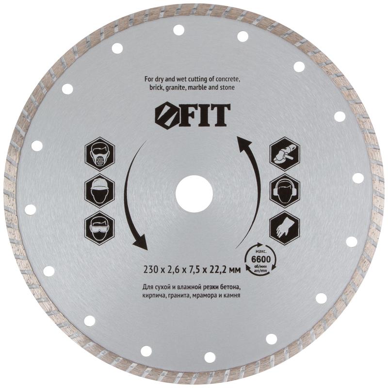 Диск отрезной алмазный Турбо 230х2.8х7.5х22.2мм сухая и влажная резка FIT 37477