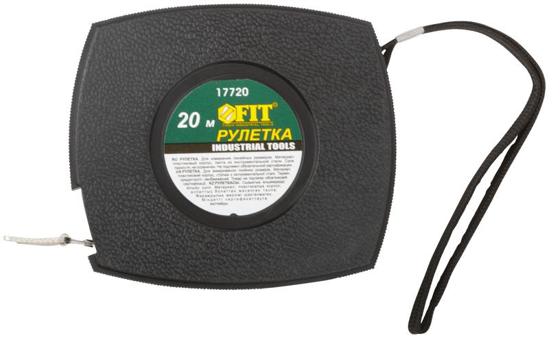 Рулетка 20м стальная лента закрытый пластик. корпус черн. FIT 17720