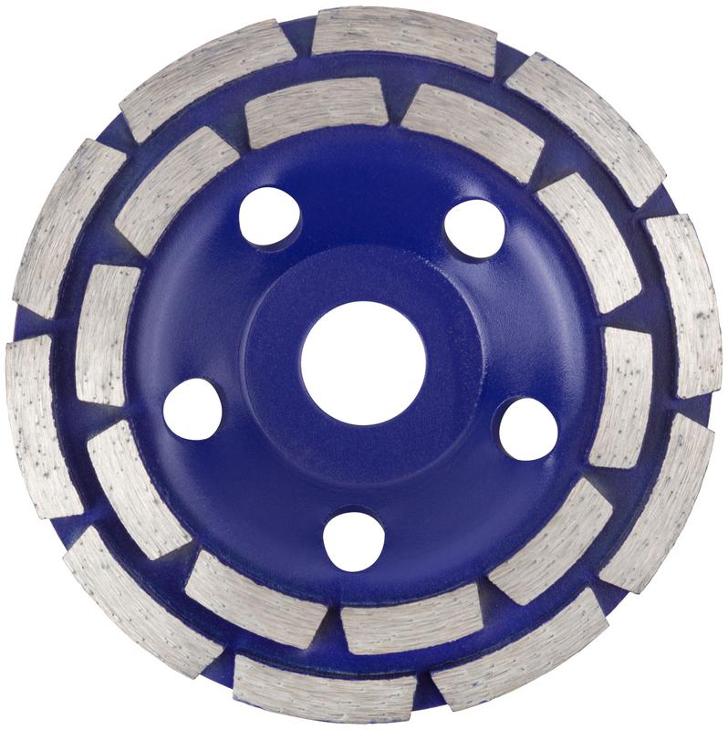 Диск алмазный шлифовальный CUTOP PROFI предназначен для выравнивания кромки, шлифовки и полировки бетона, гранита, мрамора и аналогичных строительных материалов. Подходит для тонкой обработки. Рабочая поверхность из 20 сегментов, расположенных в два ряда, содержит порошок из технических алмазов, что позволяет работать с самыми твердым и прочным материалам. Специальные отверстия в корпусе и форма расположения сегментов улучшают отвод отработанного материала и усиливают воздушное охлаждение. Широкая рабочая поверхность увеличивает скорость и эффективность работы.