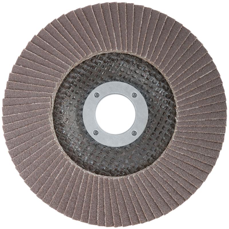 Круг наждачный лепестковый торцевой Cutop Profi предназначен для обработки металла и нержавеющей стали. Используется с УШМ. При изготовлении кругов используется высококачественный гибкий абразивный материал, состоящий из тканевой основы, на которую нанесен слой кальцинированного оксида алюминия. Данный абразив имеет более твердые частицы, чем обычный оксид алюминия, что позволяет увеличить скорость обработки поверхности. Наполняемость диска составляет 80 лепестков с углом наклона 10 градусов, что позволяет увеличить КПД круга и его стойкость к износу в несколько раз.