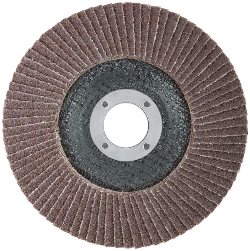 Круг наждачный лепестковый торцевой Cutop Profi предназначен для обработки металла и нержавеющей стали. Используется с УШМ. При изготовлении кругов используется высококачественный гибкий абразивный материал, состоящий из тканевой основы, на которую нанесен слой кальцинированного оксида алюминия. Данный абразив имеет более твердые частицы, чем обычный оксид алюминия, что позволяет увеличить скорость обработки поверхности. Наполняемость диска составляет 80 лепестков с углом наклона 10 градусов, что позволяет увеличить КПД круга и его стойкость к износу в несколько раз.