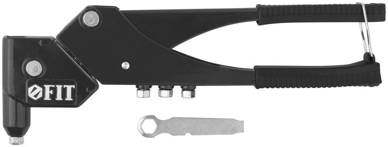 Заклепочник с поворотным механизмом FIT IT позволит вам проводить ремонтные и строительные работы с высокой точностью и качеством! Инструмент предназначен для установки вытяжных алюминиевых заклёпок в труднодоступных местах. Заклепочник имеет четыре быстросменные насадки и пружинный рычаг для выброса сердечника. Рукоятки выполнены из усиленной инструментальной стали с виниловым покрытием, предотвращающ проскальзывание инструмента во время работы. Заклепочник предназначен для работы с заклепками 2,4; 3,2; 4,0; 4,8 мм.