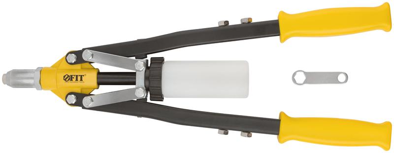 Заклепочник FIT HQ позволит вам проводить ремонтные и строительные работы с высокой точностью и качеством! Инструмент предназначен для установки вытяжных алюминиевых и стальных заклёпок диаметром 3,2; 4,0; 4,8; 6,0; 6,4 мм. Откручиваемый пластиковый контейнер для сбора отработанных сердечников позволяет сохранять рабочее пространство чистым. Усиленная конструкция обеспечивает высокую производительность и долгий срок службы инструмента. Удлиненные обрезиненные рукоятки обеспечивают лучшее рычажное действие.