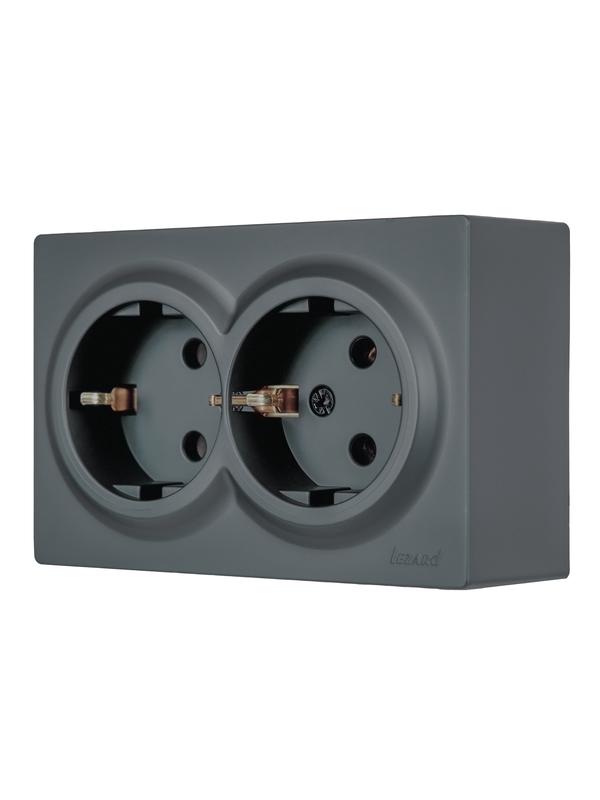 Розетка 2-м ОП LETO с заземл. закрытый корпус ПБТ графит LEZARD 752-3400-127B