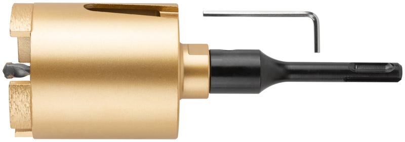 Коронка кольцевая алмазная КУРС с центрирующим сверлом и хвостовиком SDS-plus предназначена для безударного сверления отверстий под монтажные коробки в бетоне (в том числе армированном) и кирпиче. Требуется водяное охлаждение. Алмазная заточка зубьев обеспечивает высокую скорость выполнения работ. Центрирующее сверло позволяет точно позиционировать коронку перед началом сверления и предотвращает ее смещение во время работы.
