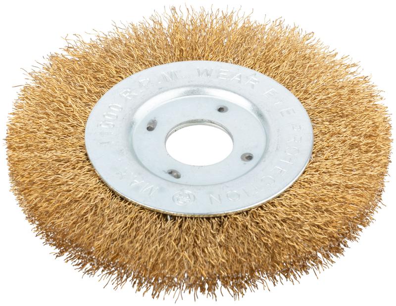 Корщетка-насадка для УШМ FIT IT типа ‘’колесо’’ предназначена для обработки дерева и металла, снятия краски. Волнистая проволока обеспечивает деликатную зачистку поверхностей. Латунное покрытие проволоки предотвращают коррозию. Корщетка типа «колесо» наиболее эффективна при обработке стыков, углов, пазов и различных труднодоступных мест.