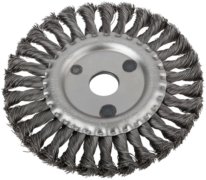 Корщетка-насадка для УШМ FIT IT типа ‘’колесо’’ предназначена для грубой обработки дерева и металла, зачистки сварных швов, снятия краски и ржавчины. Стальная витая проволока обеспечивает высокую скорость и эффективность работы. Корщетка типа «колесо» наиболее эффективна при обработке стыков, углов, пазов и различных труднодоступных мест.