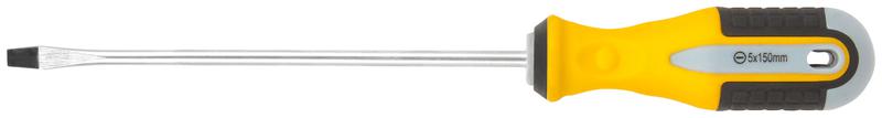 Отвертка FIT IT ‘’Старт’’ предназначена для завинчивания и отвинчивания крепёжных изделий с резьбой. Стержень отвертки изготовлен из хромованадиевой стали и выдерживает высокие механические нагрузки. Точная геометрия наконечника позволяет эффективно работать с соответствующим типом крепежа. Магнитный наконечник способствует удержанию крепежных элементов и их извлечению из труднодоступных мест. Трехкомпонентная рукоятка с текстурными резиновыми вставками не скользит в руке во время работы. В рукоятке предусмотрено отверстие для удобного хранения.