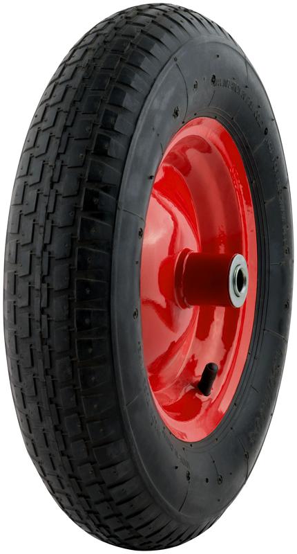 Для тачки строительной Профи 77556. С резиновой шиной и камерой. Шариковый подшипник из высокоуглеродистой стали. Диск крашеный. Рабочее давление 1,5 атм (бар), максимальное давление 2 атм (бар). Грузоподъемность колеса 160 кг. Диаметр надувного колеса 400 х 90 мм. Диаметр диска 230 мм. Посадочные размеры: ширина 130 мм, диаметр 16 мм.