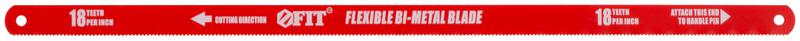 Биметаллическое одностороннее полотно ножовочное по металлу ''Профи'' (Bi-Metal, 18 ТPI) FIT HQ используется с ножовкой по металлу при проведении слесарных и строительных работ. Зубья полотна производятся из быстрорежущей стали Р6М5, основа — из термообработанной высококачественной хром-ванадиевой стали. В области зубьев проводится закалка. Полотно отличается хорошей гибкостью и высокой износостойкостью. Шаг зубьев 18 TPI обеспечивает высокую скорость реза.