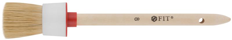 Кисть круглая FIT IT предназначена для работ со всеми видами лакокрасочных материалов. Круглая рабочая часть особенно эффективна в нанесении декоративных покрытий, отведении углов, лессировке поверхностей. Натуральная щетина отличается высокой впитываемостью и наполняемостью краской. Деревянная ручка удобно лежит в руке.