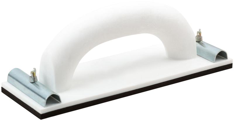 Держатель для наждачной бумаги FIT IT с металлическими прижимами и резиновой подложкой используется при обработке плоских поверхностей. В качестве расходных шлифовальных материалов применяют наждачные/сетчатые ленты соответствующей ширины с любым рабочим абразивом (по фракции, типу, структуре). Корпус держателя выполнен из прочного пластика, что обеспечивает его износостойкость и долговечность.