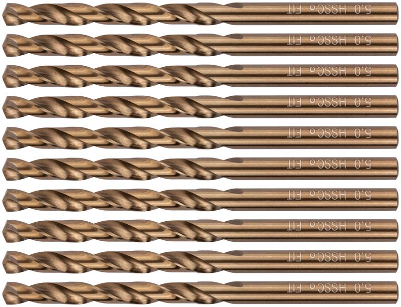 Сверло по металлу кобальтовое ‘’Профи’’ FIT HQ предназначено для сверления отверстий в углеродистых и легированных сталях, серых и ковких чугунах, цветных металлах и пластике. Сверло изготовлено из качественной быстрорежущей стали Р6М5К5. Добавка 5 % кобальта увеличивает износостойкость сверла и способствует высокой точности при работе. Форма спирали соответствует стандарту DIN 338 и способствует эффективному удалению стружки во время работы. Сверла имеют высший класс точности А1 и высверливают отверстия с высокоточным диаметром. Сверла изготавливаются методом вышлифовки профиля, что повышает плавность сверления и чистоту готовых отверстий.