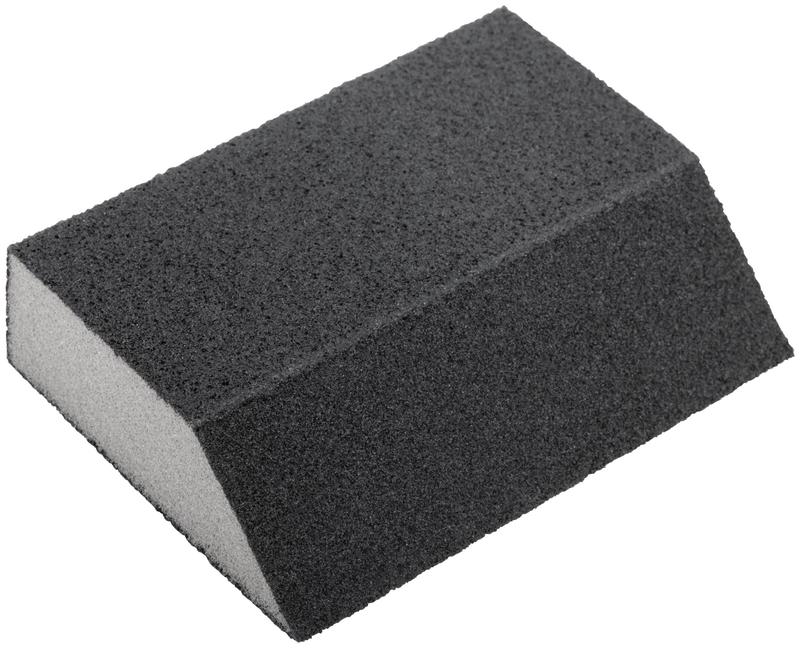 100 х 70 х 25 мм. Угловая. Водостойкая. Средняя жесткость. Для доводочных работ. Для обработки металла, дерева, фанеры, гипсокартона, ДСП. Материал: алюминий-оксидный абразивный слой. Упаковка: п/э пакет с картонным подвесом.