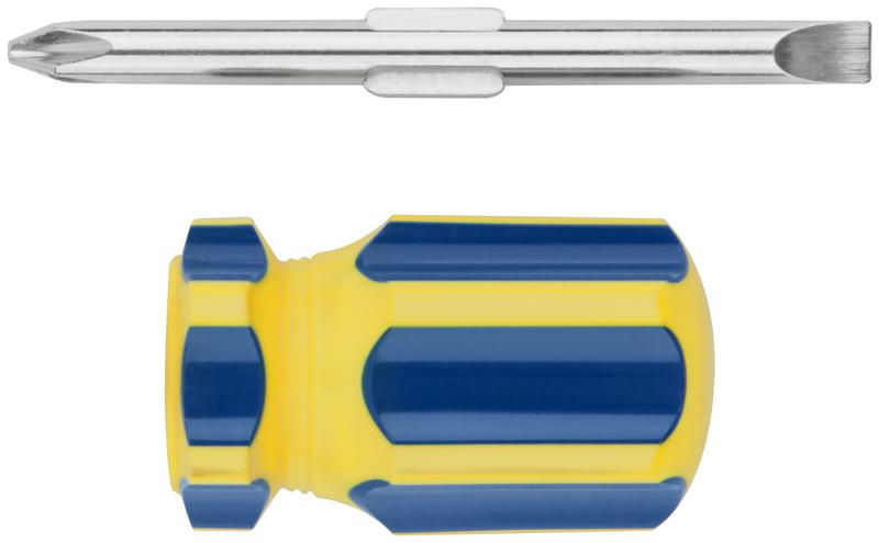 Отвертка с переставным жалом "коротыш" CrV сталь пластиковая ручка 6х32мм PH2/SL6 син.-желт. FIT 56212