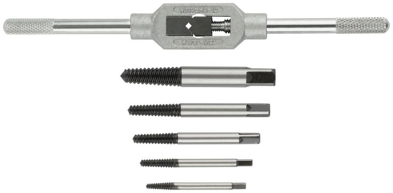 Набор экстракторов для шурупов FIT IT предназначен для выкручивания шурупов и болтов с поврежденным шлицем. Экстракторы выполнены из легированной инструментальной стали, что обеспечивает их прочность и долговечность. Корпус воротка выполнен из цинкового сплава, ручки и зажим — из инструментальной стали. 5 экстракторов разных размеров в комплекте обеспечивают широкий спектр применения.