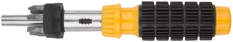 Отвертка реверсивная FIT – это удобный и практичный инструмент для завинчивания и отвинчивания шурупов с разными типами шлицев. Реверсивный механизм позволяет быстро менять направление вращения отвертки. Отвертка оснащена желтой ручкой с антискользящей накладкой, которая обеспечивает комфортный хват и предотвращает скольжение в руке. Набор включает 6 бит из хромованадиевой стали CrV с разными типами шлицев и размерами, что позволяет выполнять различные работы.