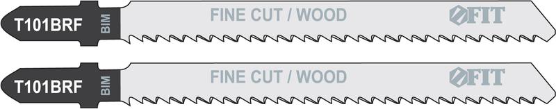 Комплект из двух полотен FIT IT (T101BRF) предназначен для прямого реза по дереву, ламинату, полимерным и эпоксидным материалам. Закалка рабочей части до твердости 62–65 HRC обеспечивает высокую износостойкость. Полотна не скалывают лицевую сторону поверхности за счет реверсивно направленной формы зубьев. Заточка зубьев повышает эффективность и качество реза. Зубья изготовлены из быстрорежущей стали (HSS) Р6М5 и имеют улучшенную стойкость к истиранию. Основа изготовлена из хром-ванадиевой стали и обладает высокой прочностью, термостойкостью и стойкостью к коррозии. Т-образный хвостовик европейского типа совместим с большинством моделей электролобзиков.