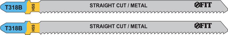 Комплект из двух полотен FIT IT (T318B) предназначен для прямого реза по металлу. Закалка полотен до твердости 60–65 HRC обеспечивает высокую износостойкость. Шаг зубьев 2,0 мм способствует высокой скорости и чистоте реза металлов. Волнообразная разводка зубьев повышает скорость пропила и минимизирует вероятность заклинивания полотна во время работы. Длинное полотно дает возможность быстро и эффективно резать пустотелые изделия. Т-образный хвостовик европейского типа совместим с большинством электрических лобзиков.
