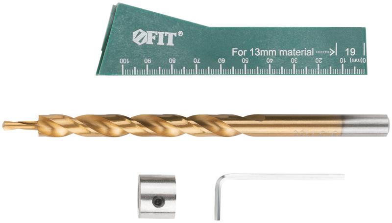Кондуктор для глухих отверстий одинарный FIT IT предназначен для точного позиционирования сверла при сверлении глухих отверстий под углом 15°, с помощью которых можно соединять две деревянные заготовки. Оптимально для заготовок толщиной 14–38 мм. Корпус кондуктора изготовлен из прочного нейлона. Внутренняя стальная направляющая обладает высокой износостойкостью. Встроенный ферритовый магнит помогает надежнее фиксировать стальной зажим. Вырез в корпусе обеспечивает отвод стружки. Линейка способствует точному позиционированию кондуктора. Наконечник сверла со спиральным профилем оптимален для сверления отверстий под косой шуруп. Сверло изготовлено из быстрорежущей стали и обладает высокой прочностью и износостойкостью. Покрытие из нитрида титана (TiN) снижает сопротивление во время сверления и повышает поверхностную твердость сверла. Ограничитель помогает сверлить отверстия с заданной глубиной.