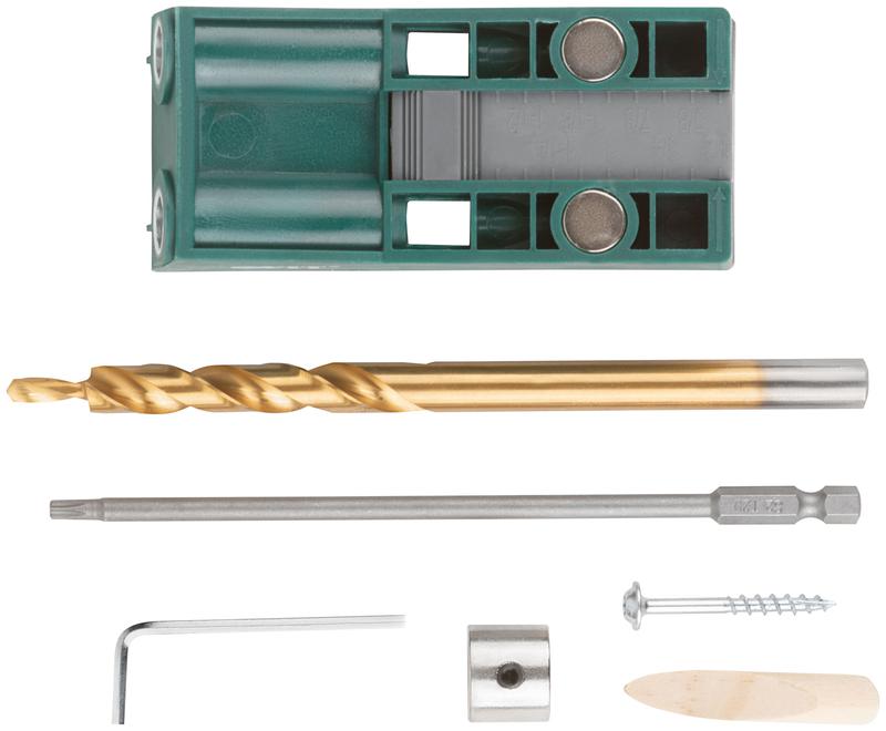 Кондуктор для глухих отверстий двойной FIT IT предназначен для точного позиционирования сверла при сверлении глухих отверстий под углом 15°, с помощью которых можно соединять две деревянные заготовки. Оптимально для заготовок толщиной 14–38 мм. Встроенный ферритовый магнит помогает надежнее фиксировать стальной зажим. Линейка и выдвижной дистанцир способствуют точному позиционированию кондуктора. Сверло изготовлено из быстрорежущей стали и обладает высокой прочностью и износостойкостью. Покрытие из нитрида титана снижает сопротивление во время сверления и повышает поверхностную твердость сверла. Ограничитель помогает сверлить отверстия с заданной глубиной. Саморезы с крупным шагом в комплекте наиболее эффективны при работе с древесиной мягкой пород. Бита из хром-ванадиевой стали обладает длительным сроком службы и намагничена с целью повышения удобства использования.