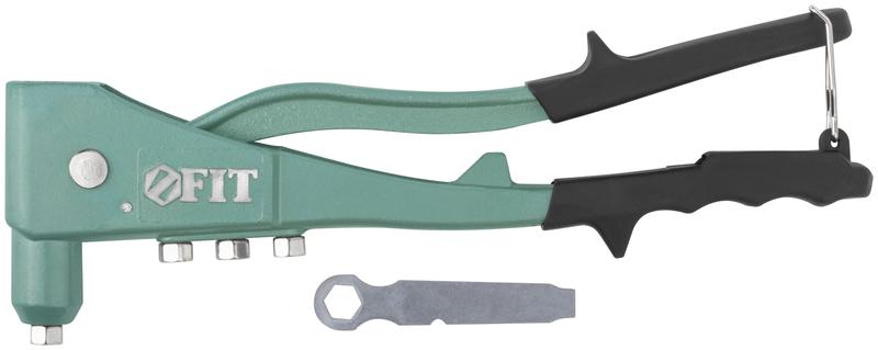 Заклепочник FIT IT Профи предназначен для создания соединений с помощью алюминиевых вытяжных заклепок. Заклёпочник имеет четыре быстросменные насадки и пружинный рычаг для выброса сердечника. Рукоятки из инструментальной стали с виниловым покрытием предотвращают проскальзывание инструмента во время работы. Литой корпус из алюминиевого сплава обладает высокой прочностью. Заклепочник предназначен для работы с заклепками 2,4; 3,2; 4,0; 4,8 мм.