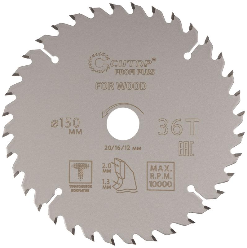 Диск пильный по дереву Cutop Profi Plus с тефлоновым покрытием. Используется совместно с циркулярными и торцовочными пилами для продольного и поперечного реза. Предназначен для распила мягких и твердых пород древесины, МДФ, фанеры и др. В комплекте поставляются переходные кольца с посадочными диаметрами (диаметры указаны на диске).Диск имеет тефлоновое покрытие и компенсационные пазы, которы способствуют быстрому теплоотводу. Благодаря этому рез получается ровный, а диск не деформируется и имеет более длительный срок службы. Изготавливаются диски в специальной автоматической индукционной машине, которая обеспечивает более гладкую поверхность и острые зубья. Материал - инструментальная сталь, карбидные зубья. Упаковка - блистер.
