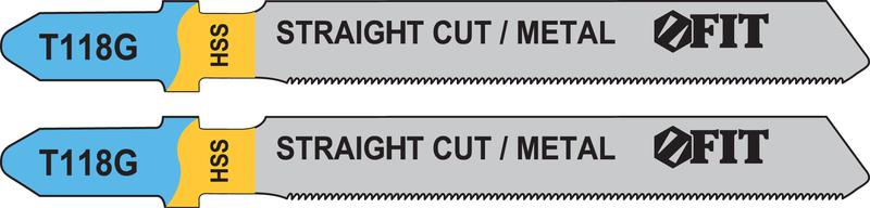Комплект из двух полотен FIT IT (Т118G) предназначен для прямого реза по металлу. Закалка полотен до твердости 62–65 HRC обеспечивает высокую износостойкость. Шаг зубьев 0,7 мм способствует высокой чистоте реза тонколистовых металлов. Волнообразная разводка зубьев повышает скорость пропила и минимизирует вероятность заклинивания полотна во время работы. Т-образный хвостовик европейского типа совместим с большинством моделей электролобзиков.