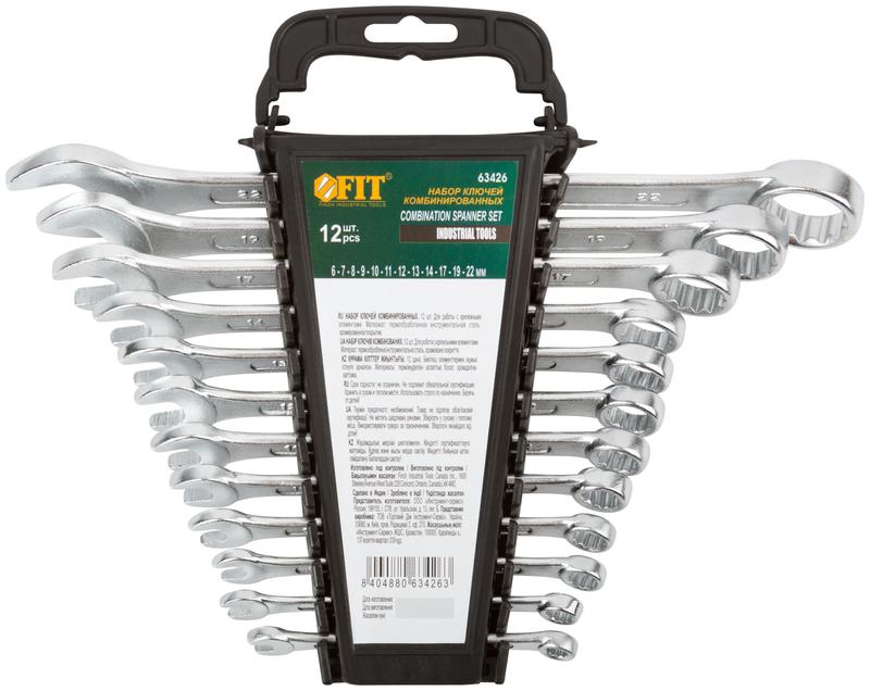 Ключи комбинированные ‘’Хард’’ FIT IT предназначены для работ с крепежными элементами. Ключи проходят процесс закалки, повышающей твердость и износостойкость ключей. Наклон рабочих частей в 15° повышает эффективность работы. Накидная часть ключа выдерживает максимальные нагрузки и наиболее эффективна при первичном откручивании и окончательном затягивании. Накидная часть с 12-гранным профилем прочно фиксируется на крепеже. Рожковая часть ключа эффективна при работе в труднодоступных местах. Эргономичная форма ключей обеспечивает надежный хват. Хромированное покрытие предотвращает коррозию. Пластиковый держатель позволяет организованно хранить ключи.