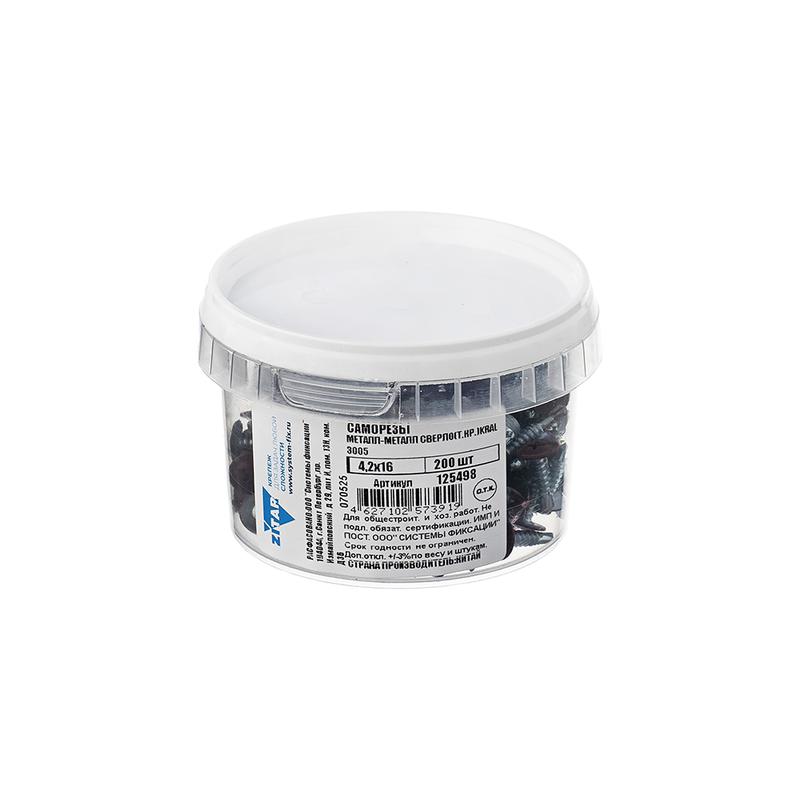 Саморез ШСММ сверло 4.2х16 темн./красн. KP RAL 3005 (уп.200шт) Tech-Krep/Zitar 125498