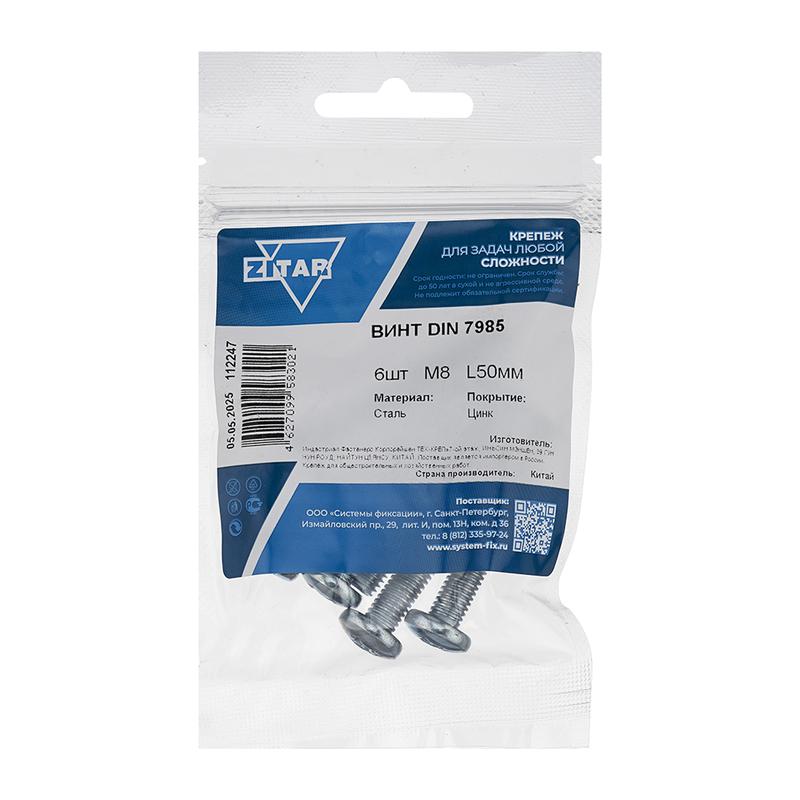 Винт с полукруглой головкой М8х50 DIN 7985 оцинк. (уп.6шт) Tech-Krep/Zitar 112247