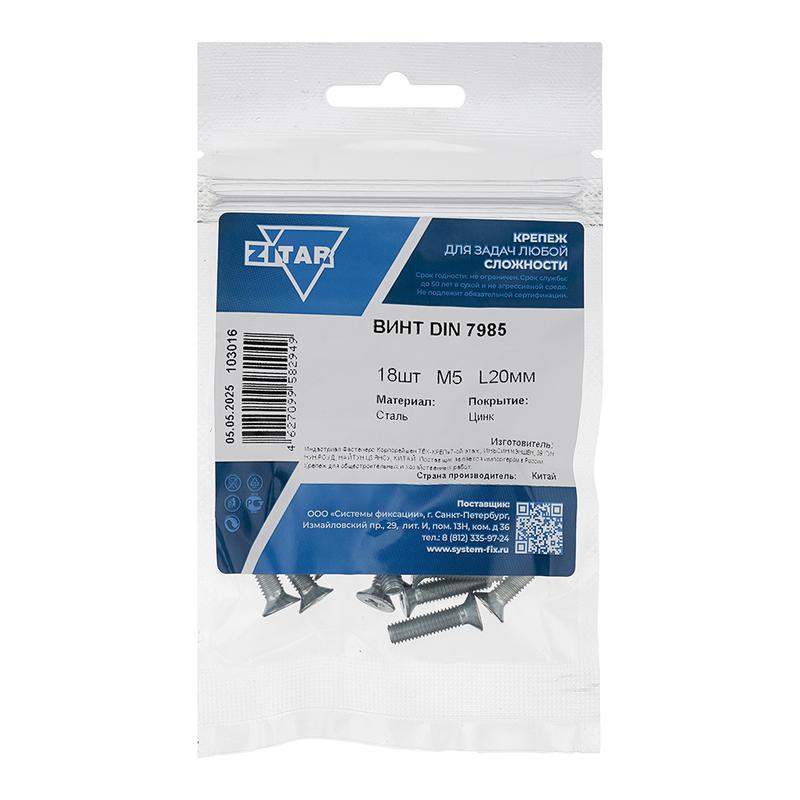 Винт с полукруглой головкой М5х20 DIN 7985 оцинк. (уп.18шт) Tech-Krep/Zitar 103016