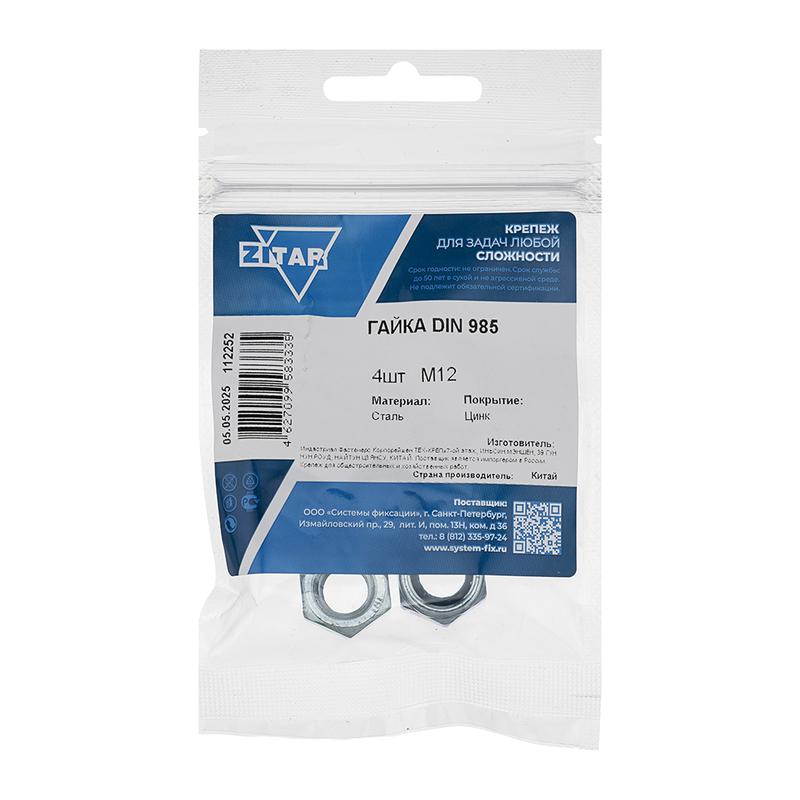 Гайка самоконтрящаяся М12 DIN 985 оцинк. (уп.4шт) Tech-Krep/Zitar 112252