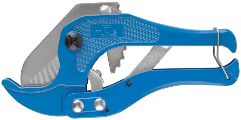 Для резки пластиковых и металлопластиковых труб. Материал: корпус из алюминиевого сплава, лезвие из инструментальной стали. Упаковка: блистер.