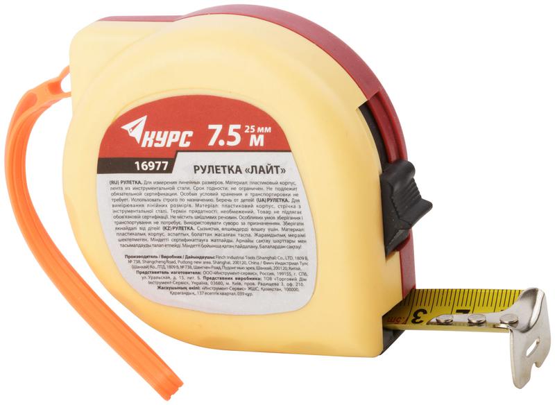 Рулетка Лайт 7.5мх25мм пластик. двухцветн. КУРС 16977