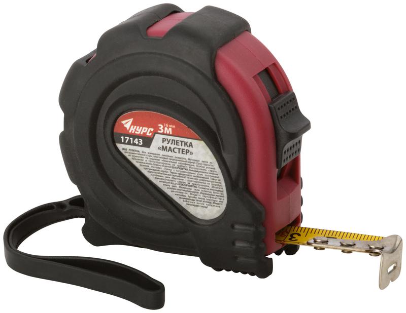 Рулетка КУРС серии "Мастер" предназначена для измерений линейных размеров. Корпус рулетки изготовлен из ударопрочного ABS-пластика, устойчивого к механическим воздействиям. Резиновые накладки на корпусе предотвращают повреждения инструмента при падении или ударе. Рулетку можно крепить на ремне с помощью металлической клипсы. Тканевый ремешок позволяет носить рулетку на руке или хранить в подвешенном положении.