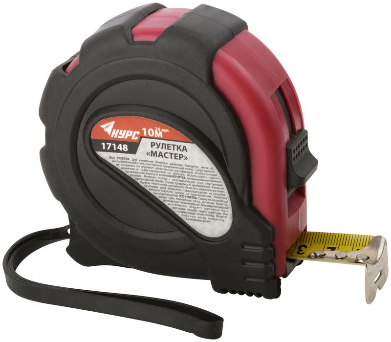 Рулетка Мастер 10мх25мм прорезиненный корпус КУРС 17148